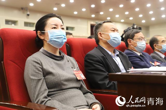 趙海霞(左一)參加青海省政協(xié)第十二屆五次會(huì)議。人民網(wǎng) 楊啟紅攝