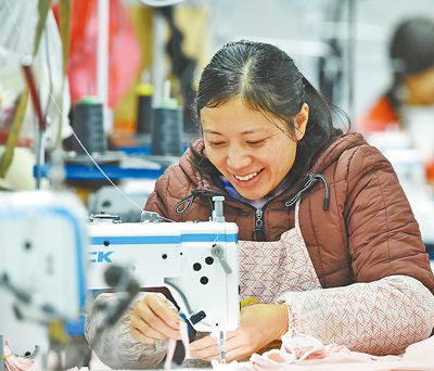 1月6日,工人在貴州省松桃苗族自治縣蓼皋街道育才社區(qū)易地扶貧搬遷安置點(diǎn)的一家扶貧車間里趕制衣服。龍?jiān)驍z(人民視覺(jué))