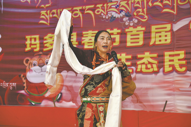 “呀嘿嘿……落木扎西哪,扎西德勒咻!”(新年快樂,吉祥如意的意思)原生態(tài)傳統(tǒng)民歌的前奏,被清澈響亮的聲線拋向天際。1月31日農(nóng)歷大年三十當(dāng)天,從全縣32個(gè)行政村(社區(qū))篩選出來的27名選手盛裝打扮,三五成群向瑪多縣委黨校匯集,參加瑪多縣春節(jié)首屆原生態(tài)民歌比賽。