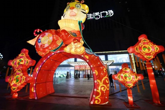 西寧火車站站前廣場燈組主題為“一帶一路”,借用古代絲綢之路的歷史符號,展現(xiàn)“一帶一路”是促進(jìn)共同發(fā)展、實現(xiàn)共同繁榮的合作共贏之路,是增進(jìn)理解信任的和平友誼之路;新千國際廣場燈組,主題為“虎年大吉”,這組燈以卡通漫畫手法來表現(xiàn)生肖主題,老虎是代表吉祥與平安的瑞獸,威風(fēng)凜凜的形象寓意祖國在新的一年里蓬勃發(fā)展,更上一層樓。同時,德令哈路中惠萬達(dá)廣場至德令哈路與夏都大街交會路口,還懸掛了數(shù)千盞燈籠,營造“萬家燈火鬧新春”的節(jié)日氣氛。