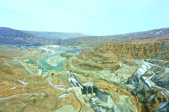 羊曲水電站建設(shè)現(xiàn)場(chǎng)。(攝于2月11日,無(wú)人機(jī)照片)青海日?qǐng)?bào)記者 欒雨嘉 攝
