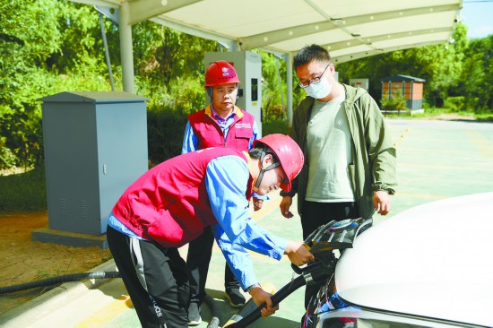檢查電動(dòng)汽車充電站設(shè)備。 李永鵬攝