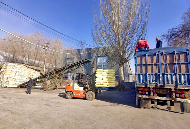 “這是一批發(fā)往貴德縣的化肥,一共35噸,目前已經(jīng)備好了貨,估計下午就到了!2月22日一早,青海農(nóng)牧生產(chǎn)資料(集團(tuán))股份有限公司里工人們正在有條不紊地裝運(yùn)化肥,隨著一條條運(yùn)輸帶的傳送,不一會,卡車內(nèi)就裝得滿滿當(dāng)當(dāng)。