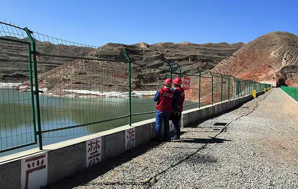 3月8日,國家電網(wǎng)青海電力三江源(海東平安)共產(chǎn)黨員服務(wù)隊檢查水庫及閘門的供電設(shè)備、線路,排除用電安全隱患。李永鵬攝