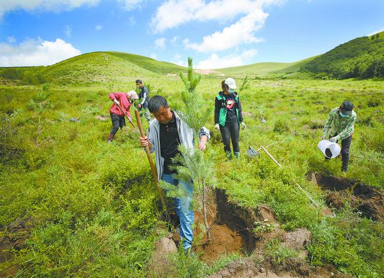 豐寧滿族自治縣造林隊(duì)員栽植樟子松苗。河北日?qǐng)?bào) 劉環(huán)宇攝