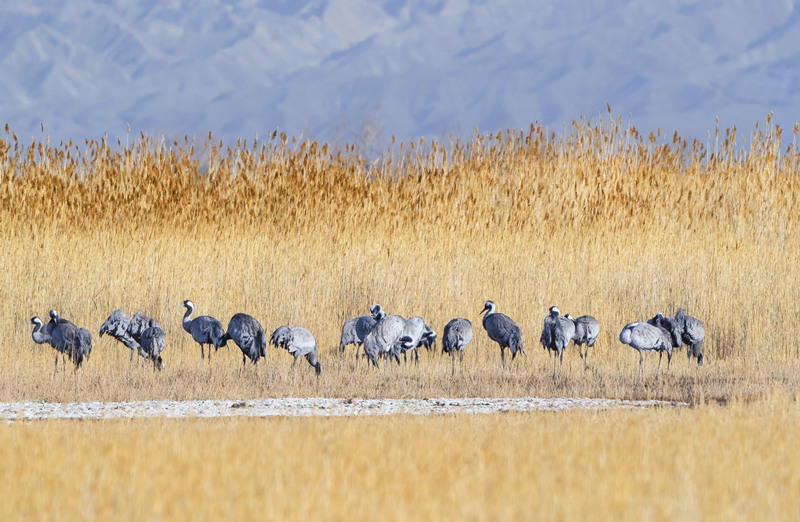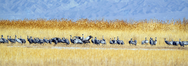 壯觀!數(shù)百只灰鶴“歇腳”柴達(dá)木盆地可魯克湖