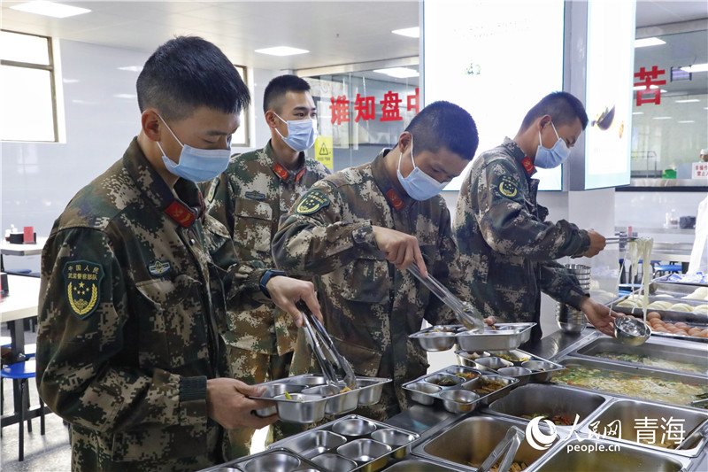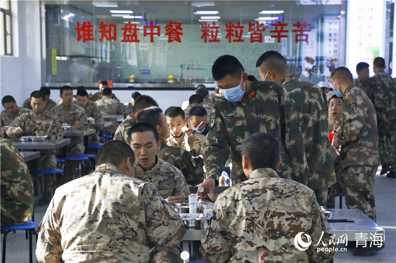 班長(zhǎng)們幫新兵打飯。人民網(wǎng) 張皓芃攝