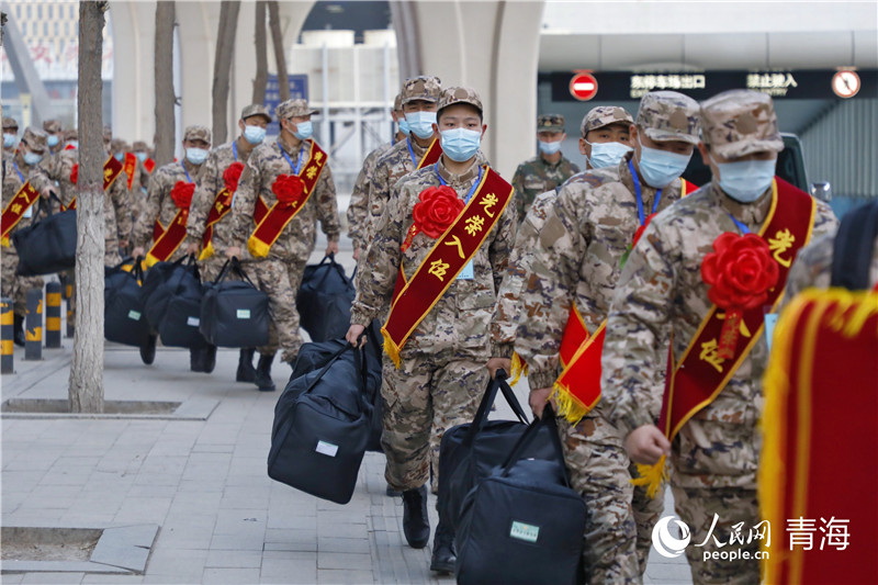 3月18日,一隊(duì)胸戴大紅花、身著迷彩服的小伙子們唱著嘹亮的軍歌步入軍營(yíng)大門(mén)。他們是武警青?傟(duì)迎來(lái)的2022年首批入營(yíng)新兵,這批平均年齡只有二十歲左右的新兵大多來(lái)自黑龍江,他們將和后續(xù)報(bào)到的戰(zhàn)友們共同在武警青海總隊(duì)新兵團(tuán)接受正式的新兵訓(xùn)練,為青海的部隊(duì)建設(shè)注入新鮮血液。