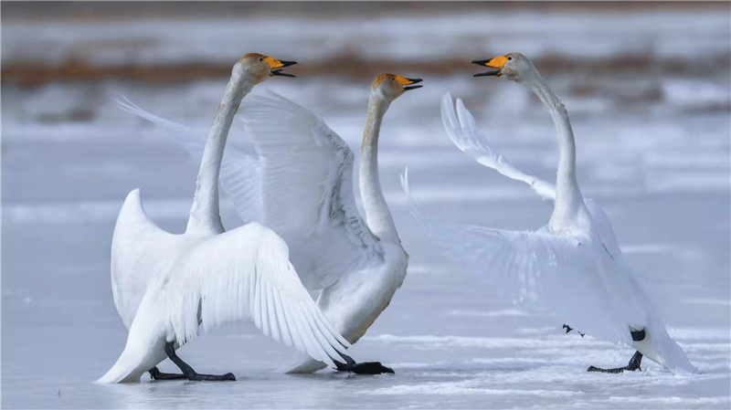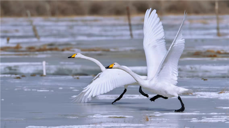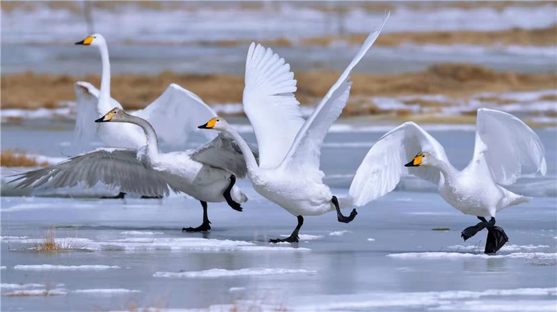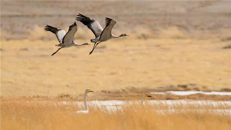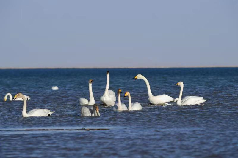 人民網(wǎng)西寧3月22日電 (甘海瓊、郭曲太)春分時(shí)節(jié),在碧波蕩漾的青海柴達(dá)木盆地可魯克湖,大天鵝、灰鶴、黃鴨等水禽時(shí)而翩翩起舞,時(shí)而振翅高飛,時(shí)而低空盤旋,為春日的可魯克湖增添了一份美麗與靈動(dòng),呈現(xiàn)出一幅高原生態(tài)大美畫卷。