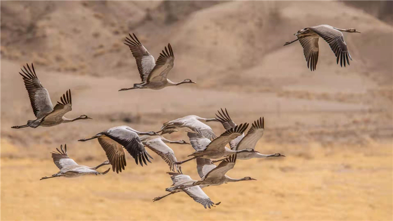 灰鶴在柴達(dá)木盆地翱翔。戴永峰攝