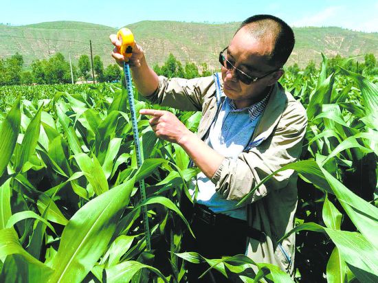 農(nóng)牧科技人員檢測(cè)農(nóng)作物長(zhǎng)勢(shì)。湟源宣供圖