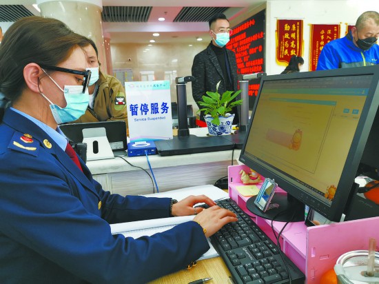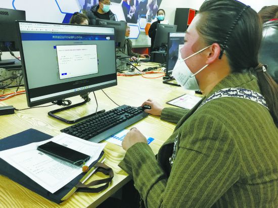 個(gè)體工商戶通過(guò)省市場(chǎng)監(jiān)督管理局行政許可一體化審批系統(tǒng)在線提交審核材料。青海日?qǐng)?bào)記者 鄭思哲攝