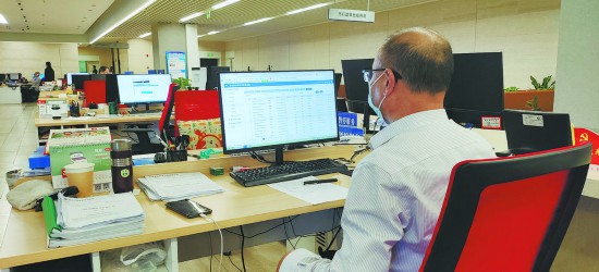 市場(chǎng)監(jiān)管工作人員正在通過(guò)省市場(chǎng)監(jiān)管局行政許可一體化審批系統(tǒng)在線審核許可。青海省市場(chǎng)監(jiān)督管理局供圖