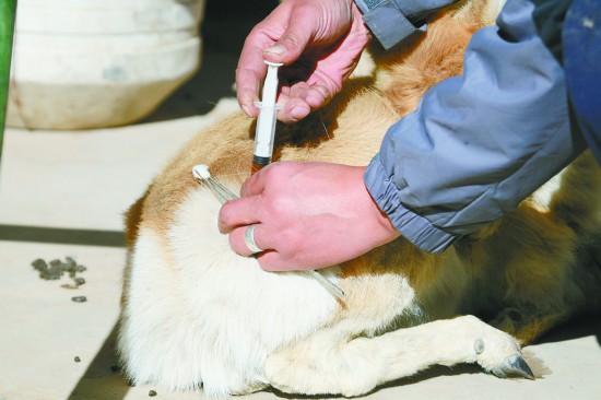 吳永林親自動手給普氏原羚打針。受訪者供圖