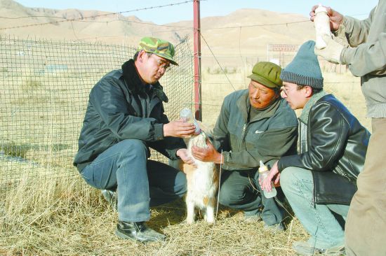 日月穿梭,時光如箭。短短幾年間,受到救護的普氏原羚數(shù)量不斷增加,對有些經過醫(yī)治恢復健康,能適應野外環(huán)境的,就及時放歸自然。不能放歸自然的許多適齡的雌雄普氏原羚,在溫馨的家園里開始談情說愛,生兒育女。早在2003年,吳永林救護的一只雌普氏原羚就成功產下第一胎幼仔。那是2001年,一只幼小的雌性普氏原羚在跨越網圍欄時受傷,被一位藏族牧民救下,吳永林和同事一塊把它接回來喂養(yǎng),并給它取名“玲玲”。2年后玲玲長大,到了做母親的年齡,2003年8月6日,它誕下了世界上第一只在人工飼養(yǎng)環(huán)境下繁育的普氏原羚幼羚,吳永林給幼羚取名為“陶陶”。救護中心第一只普氏原羚的誕生,給吳永林帶來極大的鼓舞。據長期從事普氏原羚研究的專家講,普氏原羚的人工飼養(yǎng)和繁育非常不易,如果能通過人工繁育的方式建立人工種群,對這個物種的保護有很重要的意義。從此,吳永林將精力逐步向普氏原羚人工繁育傾斜。