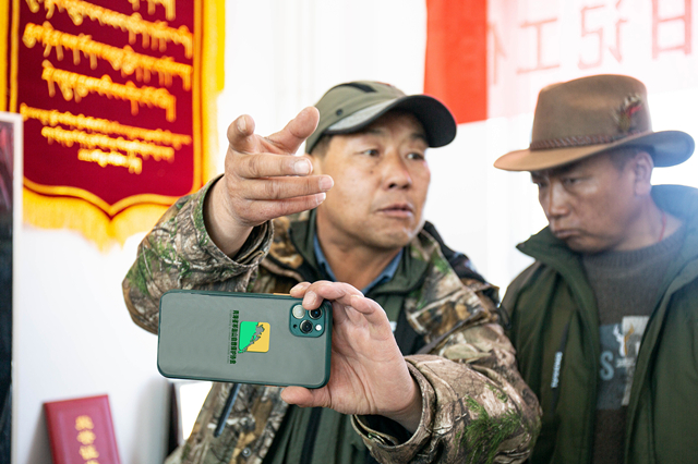鮑永清給管護員教攝影技術。祁連山國家公園供圖