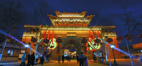 燈光映襯下的拱海門獨(dú)具魅力。青海日?qǐng)?bào)記者 咸文靜攝