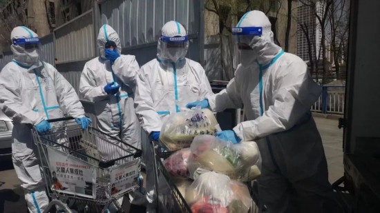 防疫人員運送物資。城東區(qū)委宣傳部供圖