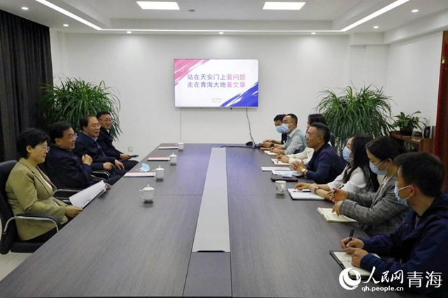 在人民網(wǎng)青海頻道,信長星與采編人員親切交流,聽取并觀看了近年來人民網(wǎng)通過紅色黨建、深度調(diào)查等融媒體內(nèi)容宣傳青海的相關(guān)情況。他指出,要充分利用融媒體手段宣傳好青海的生態(tài)環(huán)境,對外講好青海故事。