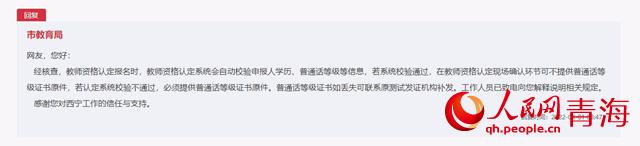 西寧市教育局就網(wǎng)友問題給出回復(fù)。截圖自人民網(wǎng)“領(lǐng)導(dǎo)留言板”