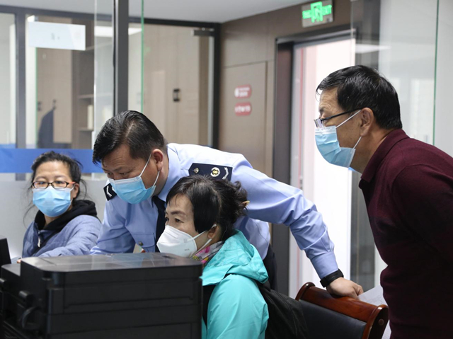 稅務(wù)干部指導(dǎo)納稅人登錄電子稅務(wù)局辦理退稅。韓子怡攝