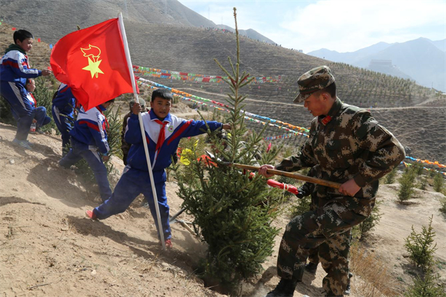 武警官兵植樹造林。武警青?傟犛駱渲ш牴﹫D