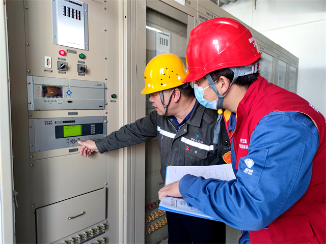 為生產(chǎn)車間檢查測(cè)控裝置、核對(duì)保護(hù)定值。國網(wǎng)青海省電力公司供圖