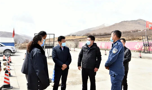 在740卡點(diǎn)和S101卡點(diǎn),索南多一行詳細(xì)了解近日入境的車流量、人員值班值守、測溫驗(yàn)碼、登記排查、落地核酸檢測以及卡點(diǎn)后勤保障等情況,并看望慰問一線工作人員,叮囑大家做好個(gè)人防護(hù)。
