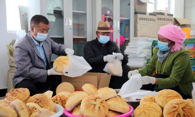 “疫情防控一線的同志們?yōu)槲覀兇蠹腋冻隽撕芏,我們就想為他們做點事情,別的做不了,做點饃饃送給他們,這算不了什么,國家有難,我們每個人都應(yīng)該出一把力!卑⒀喳湸妩h支部書記仁增多杰說。