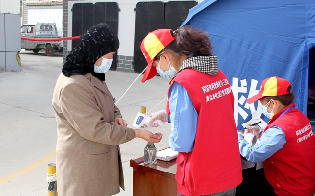 國網(wǎng)循化縣供電公司志愿服務(wù)人員在包聯(lián)小區(qū)門口開展疫情防控24小時(shí)值守工作。周勇攝
