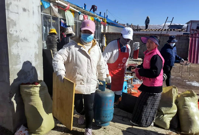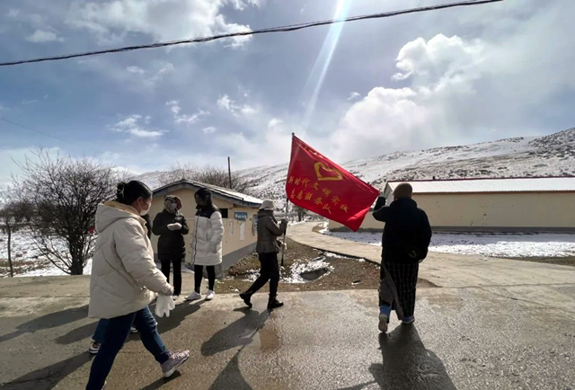 高原的春天來得遲,4月的高原依然寒冷,近幾日天公不作美,每天都會(huì)飄上幾陣雪。4月19日中午,鵝毛般的雪花從天空飄下,但是再大的風(fēng)雪,也阻擋不了志愿者的腳步。