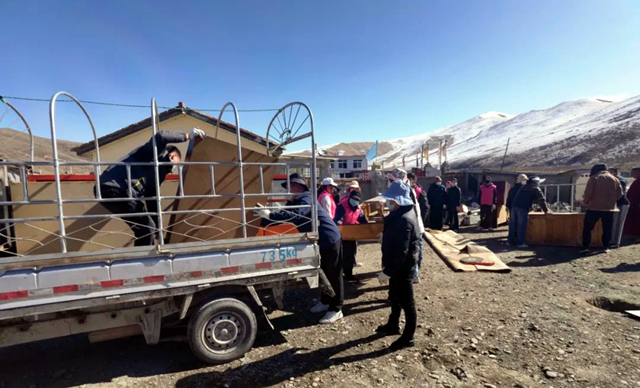 志愿者幫助征拆戶搬家。久治縣委宣傳部供圖