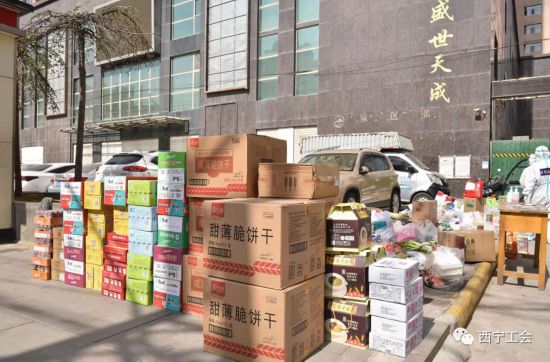 協(xié)助紅十字會調(diào)配物資。西寧市總工會供圖