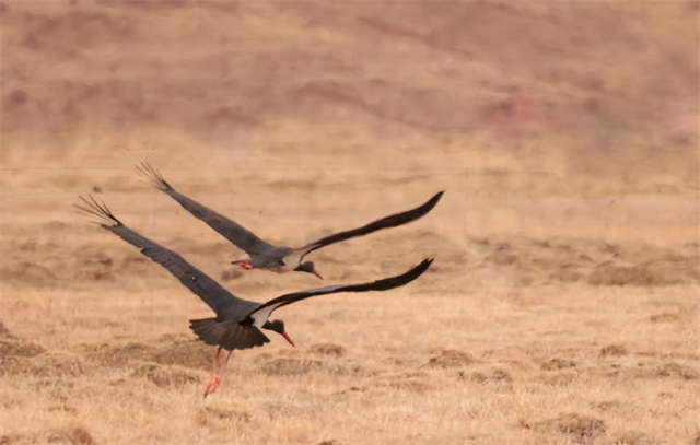 人民網(wǎng)西寧4月25日電 (楊啟紅)近日,有攝影師在祁連山國家公園亂海子濕地拍攝記錄到4只國家一級重點保護野生動物——黑鸛,它們時而低頭覓食、時而展翅飛翔。黑鸛是一種體態(tài)優(yōu)美、體色鮮明、性情機警的大型涉禽,屬世界瀕危鳥類之一,在中國僅有1000多只,珍稀程度不亞于大熊貓,因此也有“鳥中大熊貓”之稱。