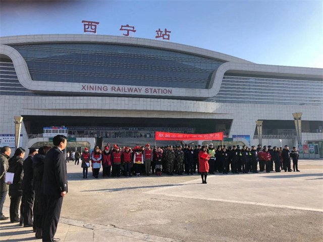 “夏都樞紐”黨建聯(lián)盟春運(yùn)期間開(kāi)展志愿服務(wù)活動(dòng)。西寧市城東區(qū)委宣傳部供圖