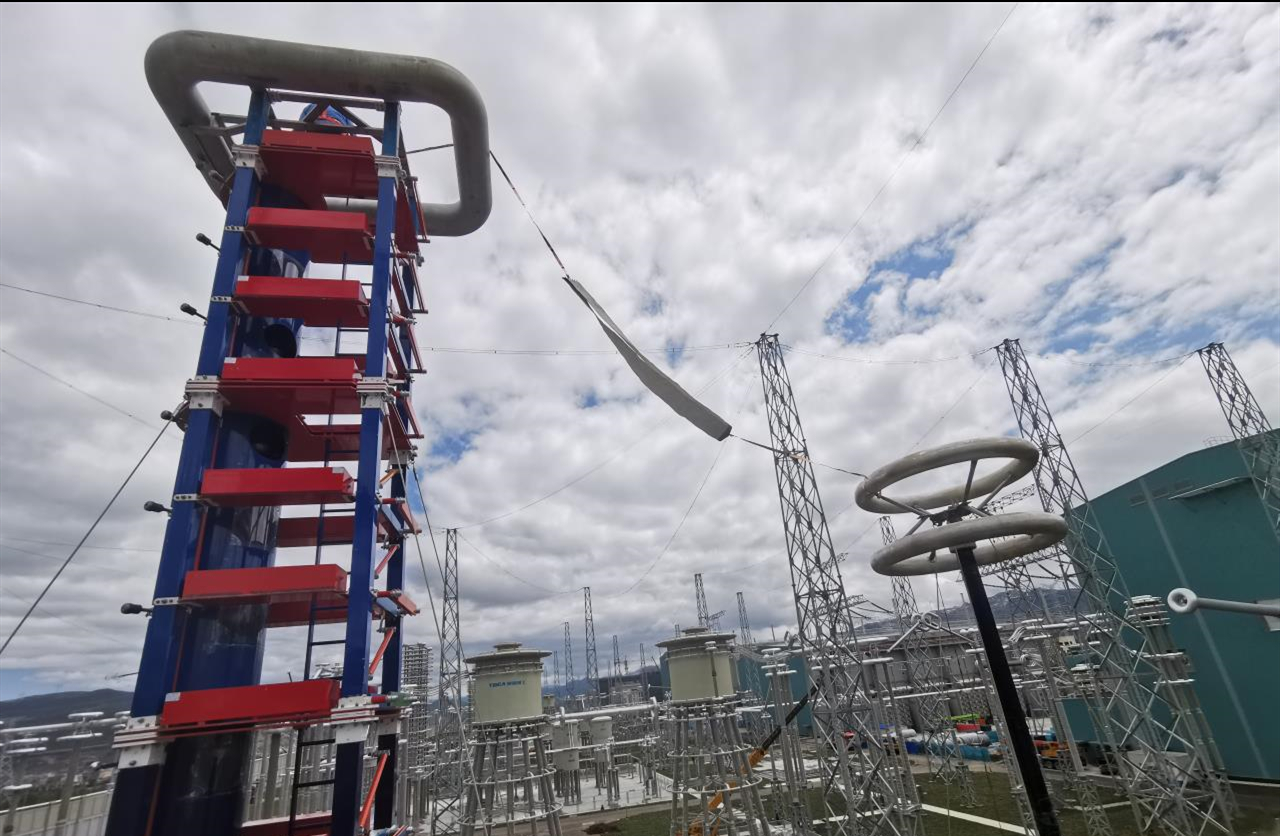 “電壓峰值在標準要求范圍內(nèi),波前時間滿足要求,波形平滑!”一道清脆的放電聲響徹云霄,“連續(xù)三次100%電壓負極性試驗完成,試驗過程無異常,62母線GIL試驗通過!”現(xiàn)場試驗負責人包正紅下達了工作指令。5月2日,在四川涼山州海拔2500米的布拖換流站內(nèi),500千伏62母線GIL設(shè)備現(xiàn)場振蕩雷電沖擊試驗由國網(wǎng)青海電科院順利完成。