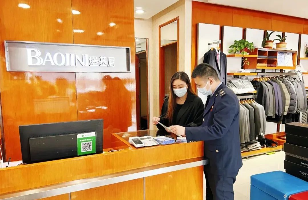 德令哈稅務(wù)人員入商戶輔導(dǎo)稅收優(yōu)惠政策。李進(jìn)攝