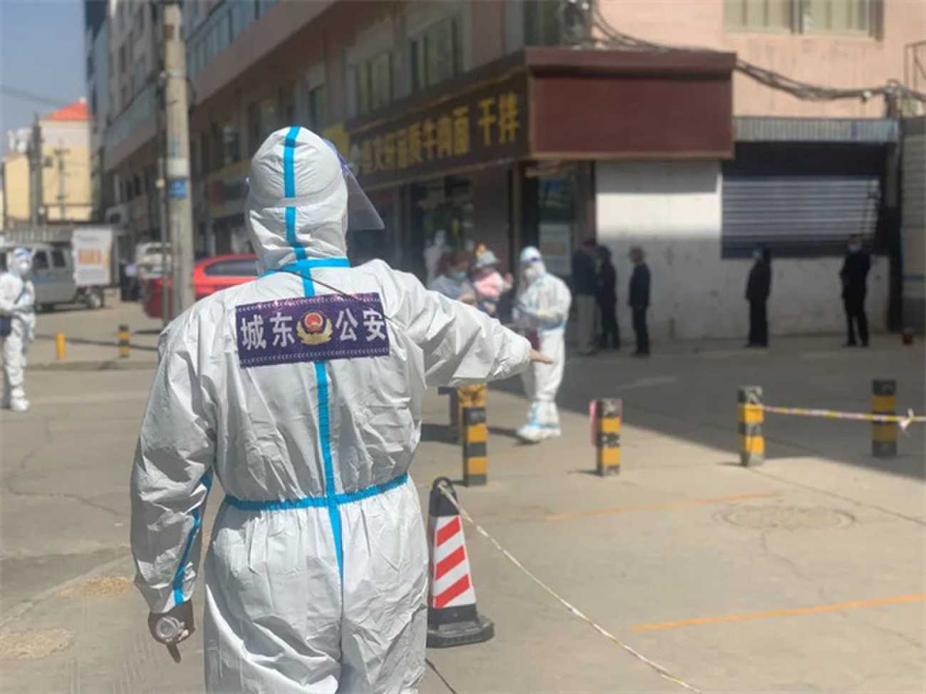 維護(hù)核酸采樣點秩序。城東區(qū)委宣傳部供圖