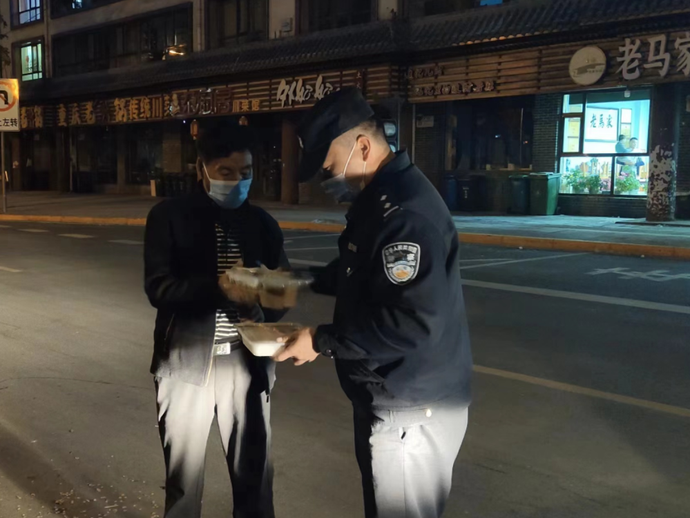 民警立即上前詢問情況,得知兩名男子從樂都來西寧工作,又遇西寧從嚴(yán)從緊防控,無法住宿和吃飯。了解情況后,巡邏民警立即從警車上拿出自己的晚飯,送給他們,解決了他們的吃飯問題,同時告知這兩名男子,如需購買食品等,他們可以代辦代購。