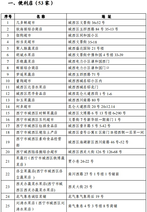 西寧市城西區(qū)公布第二批基本生活物資供應(yīng)點(diǎn)