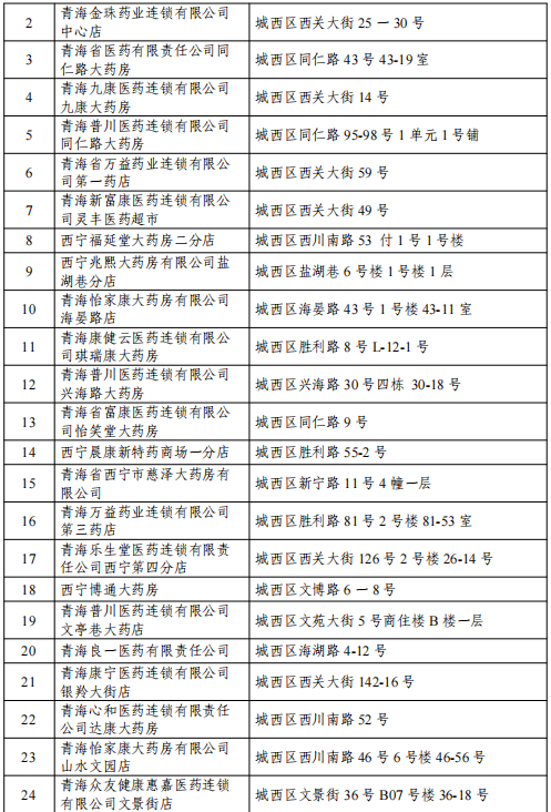 人民網(wǎng)西寧5月14日電 本網(wǎng)從西寧市城西區(qū)新冠肺炎疫情防控處置工作指揮部辦公室獲悉,為進(jìn)一步保障全區(qū)從嚴(yán)從緊防控期間轄區(qū)市民基本生活物資供應(yīng),城西區(qū)新增開放便利店53家、藥店30家(名單附后),請購物群眾憑采購證采購,每戶家庭原則上每三天安排一人外出采購一次,請大家理性有序采購生活物資。
