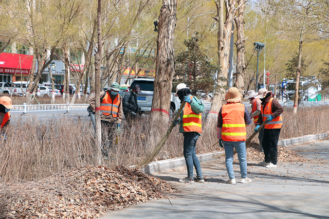 清掃道路中。格爾木市創(chuàng)建全國(guó)文明城市工作領(lǐng)導(dǎo)小組辦公室供圖