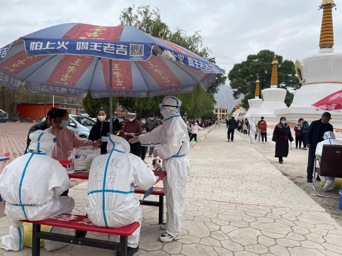 距離市區(qū)以北7公里的吾屯上、下莊是同仁市稅務(wù)局志愿者服務(wù)的主戰(zhàn)場,吾屯上下兩村距離較遠(yuǎn),人口居多,疫情防控形勢更加嚴(yán)峻。同仁市稅務(wù)局20多名黨員志愿者舉手握拳面向黨旗莊嚴(yán)宣誓后,下沉一線亮身份、踐承諾、樹形象,他們有的變身“大白”,協(xié)助醫(yī)護(hù)人員掃碼登記、核對信息;有的穿上“紅馬甲”,在每個(gè)核酸采樣點(diǎn)維護(hù)現(xiàn)場秩序;有的勇當(dāng)“勤務(wù)員”,幫助村民購買、運(yùn)送、分發(fā)蔬菜等生活必需用品,助力吾屯村扎緊織密疫情防控網(wǎng)。
