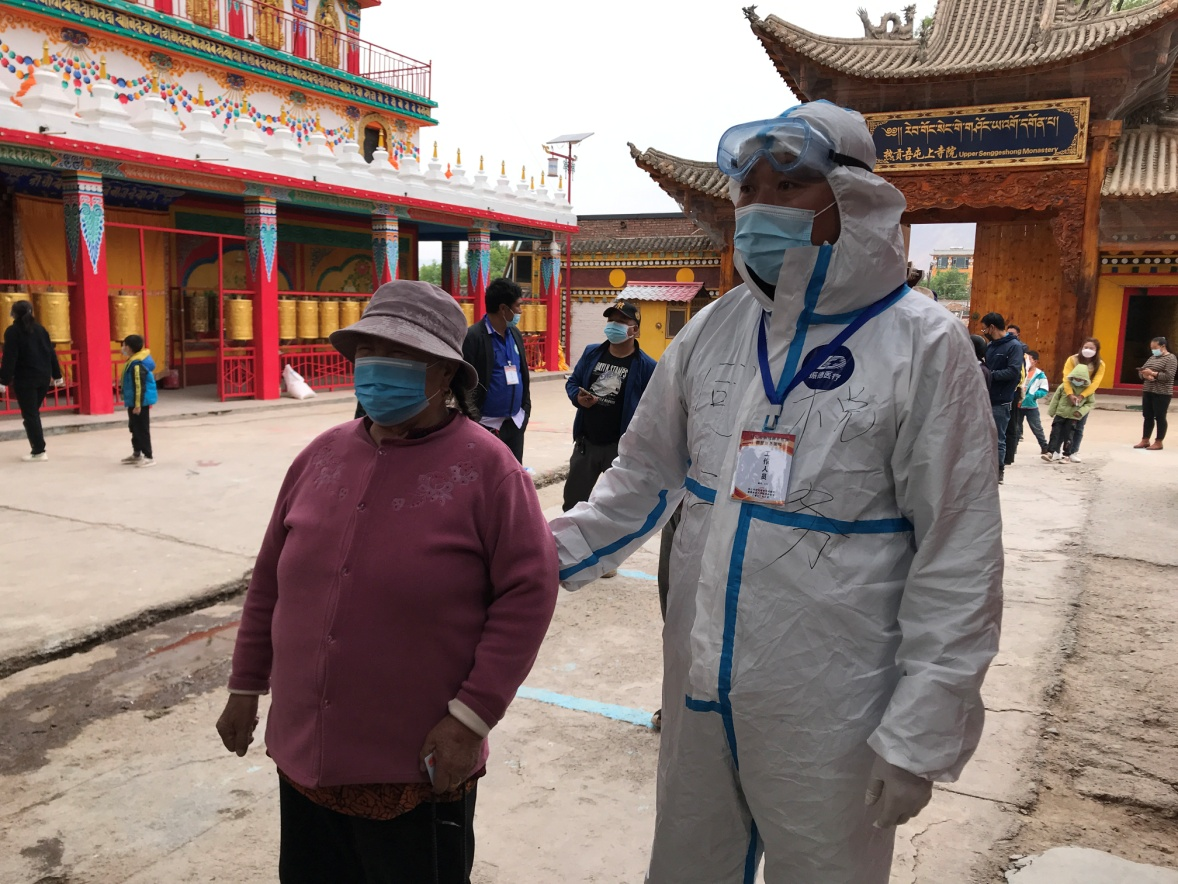 5月13日,一股說來就來的冷空氣讓本已炎熱酷暑的青海同仁氣溫驟降,這天黨員干部柴睿岳與其他志愿者一樣,穿好防護(hù)服,早早地來到吾屯上莊,與醫(yī)護(hù)人員、交警人員一同開始了新的一天服務(wù)任務(wù)。
