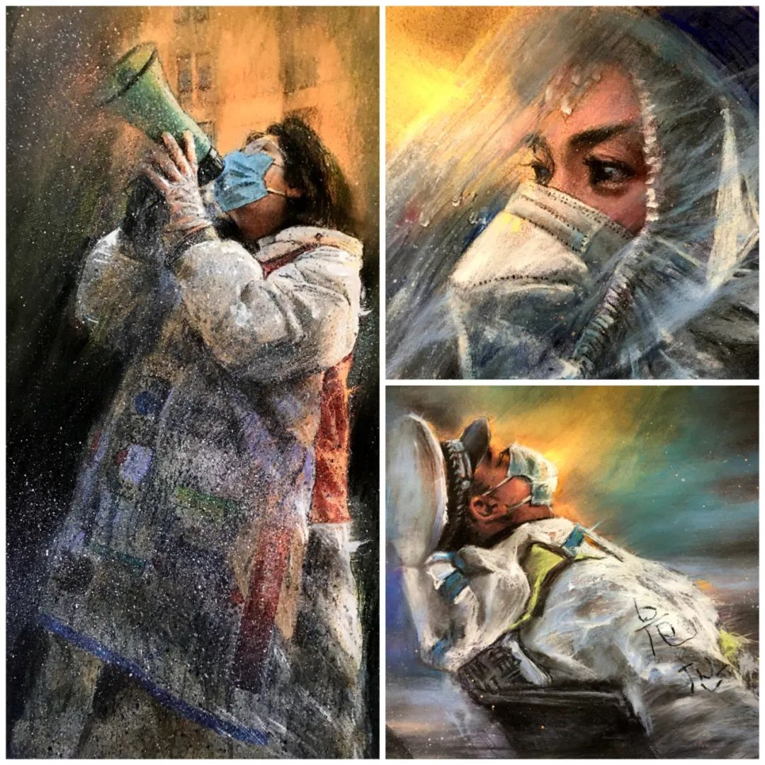 大通籍粉畫大師裴發(fā)邦抗疫作品。西寧市大通縣委宣傳部供圖