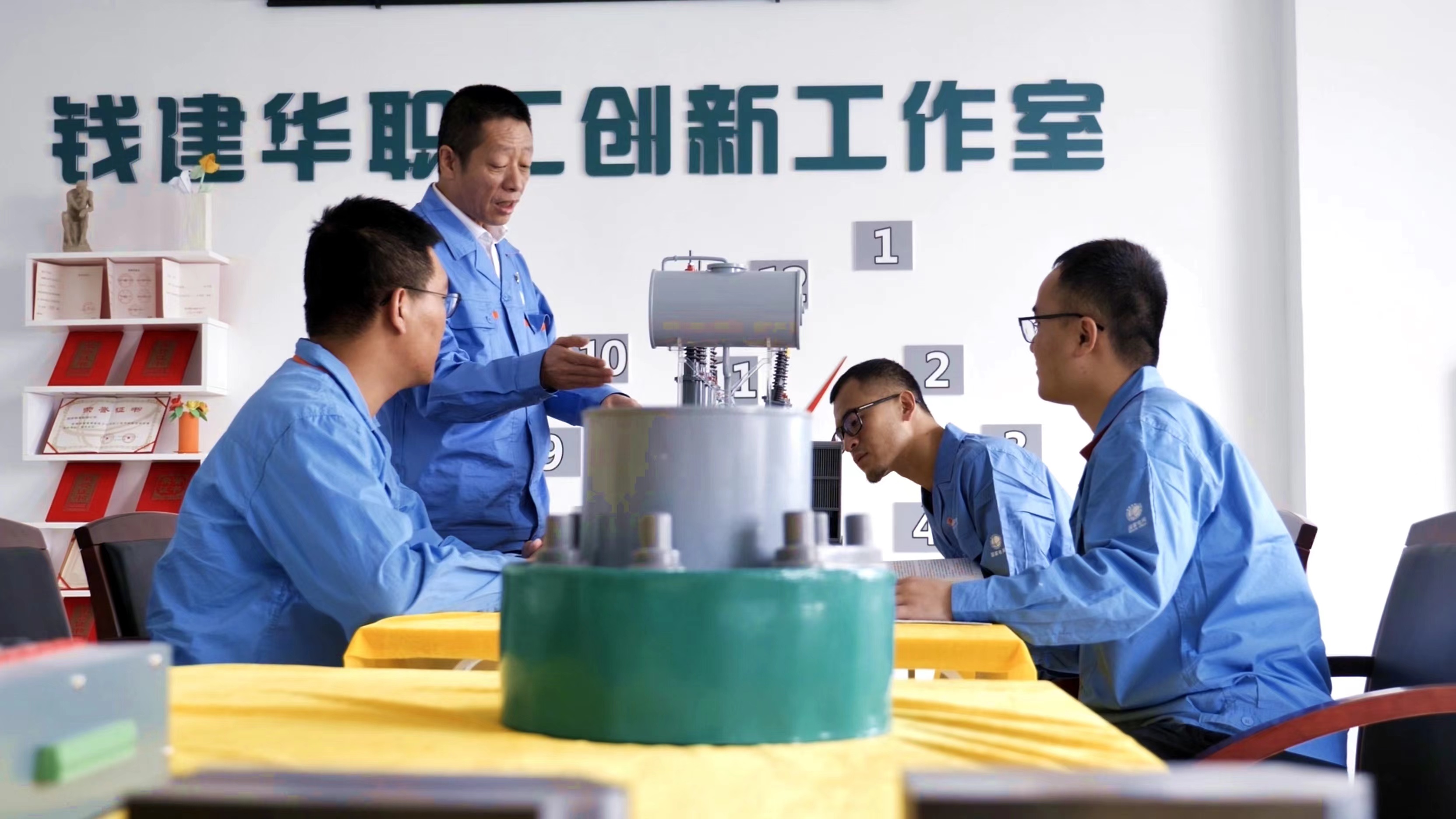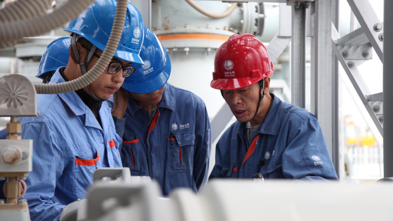 國網(wǎng)青海超高壓公司員工錢建華在“職工創(chuàng)新工作室”內(nèi)與同事們一同研究創(chuàng)新課題。國網(wǎng)青海超高壓公司供圖