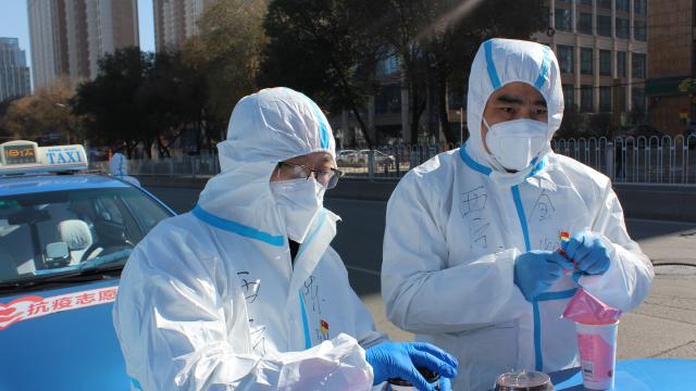 金凱(右一)參加疫情防控工作。受訪者供圖