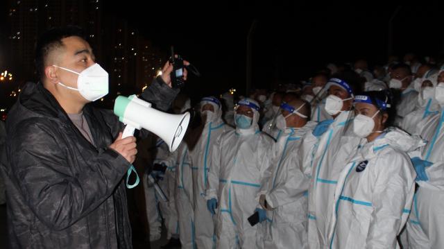 金凱(左一)帶隊(duì)參加疫情防控。受訪者供圖