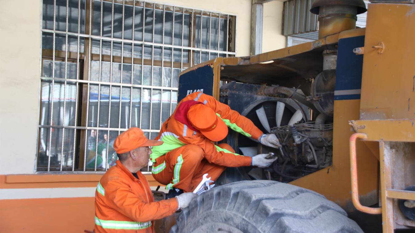方萬品(左)日常進行公路養(yǎng)護工作。本人供圖