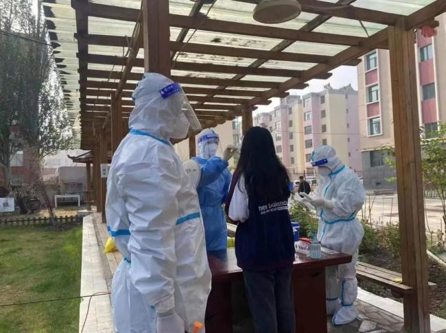 湟中區(qū)多巴鎮(zhèn)核酸采樣進行中。西寧市湟中區(qū)委宣傳部供圖